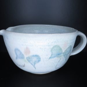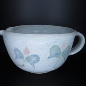 5 inches wide, 3 inches tall. Crack in the bottom left corner of the basket, buying **AS IS**