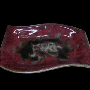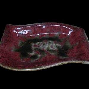 Glossy dark red into brown. No chips or cracks. Beautiful piece of art from North Carolina. 9¾ inches by 6¼ inches.