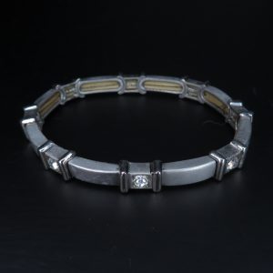 Elastic Matte Silver Color Bracelet with Clear Stones