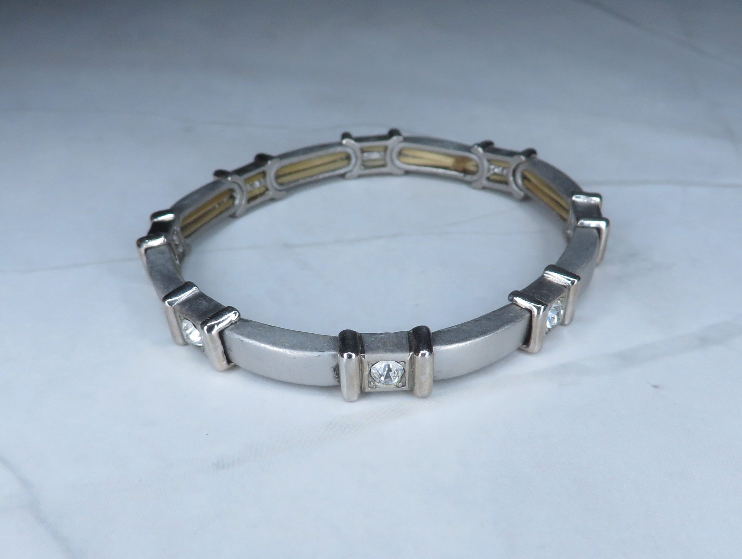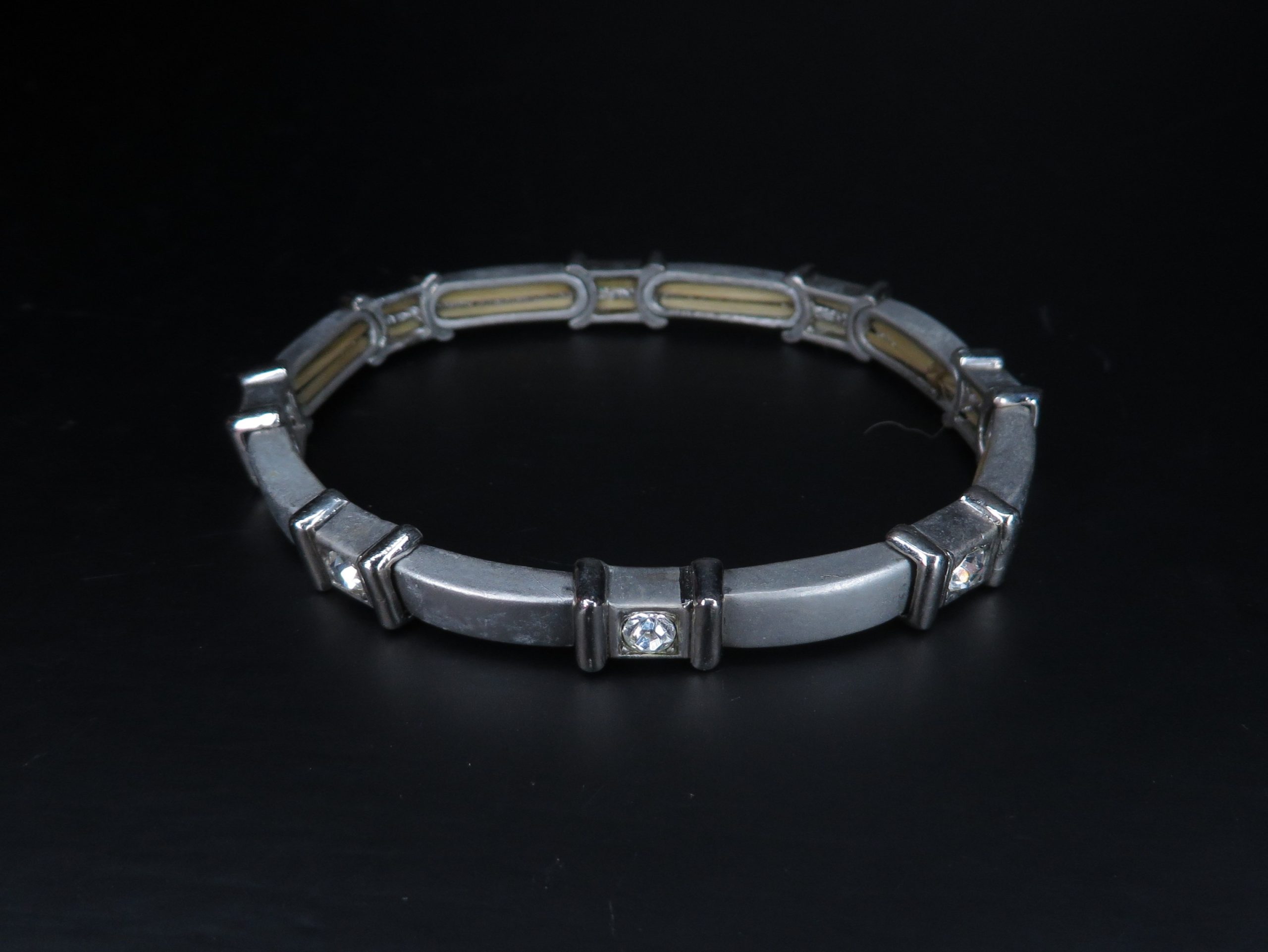 Elastic Matte Silver Color Bracelet with Clear Stones