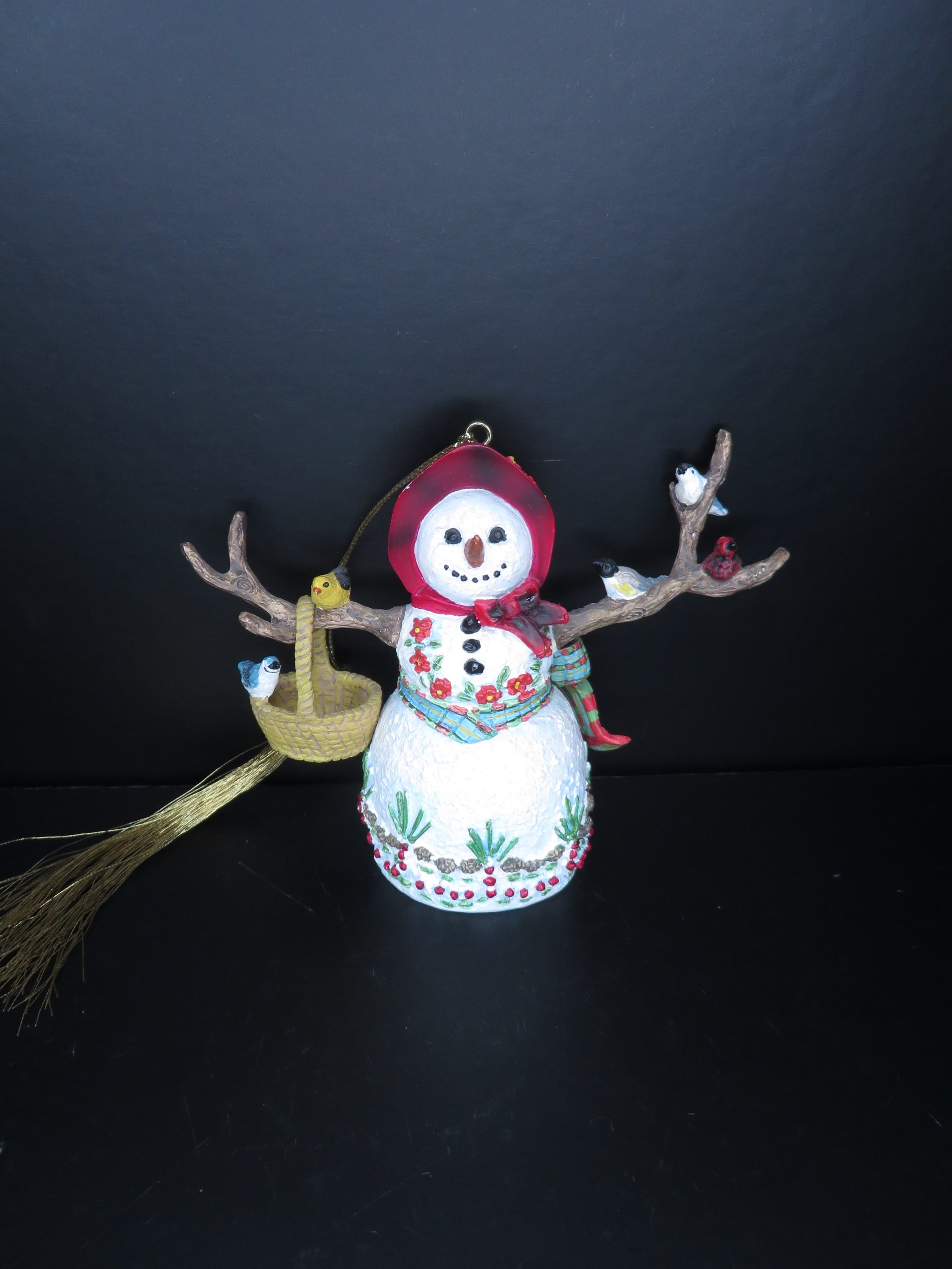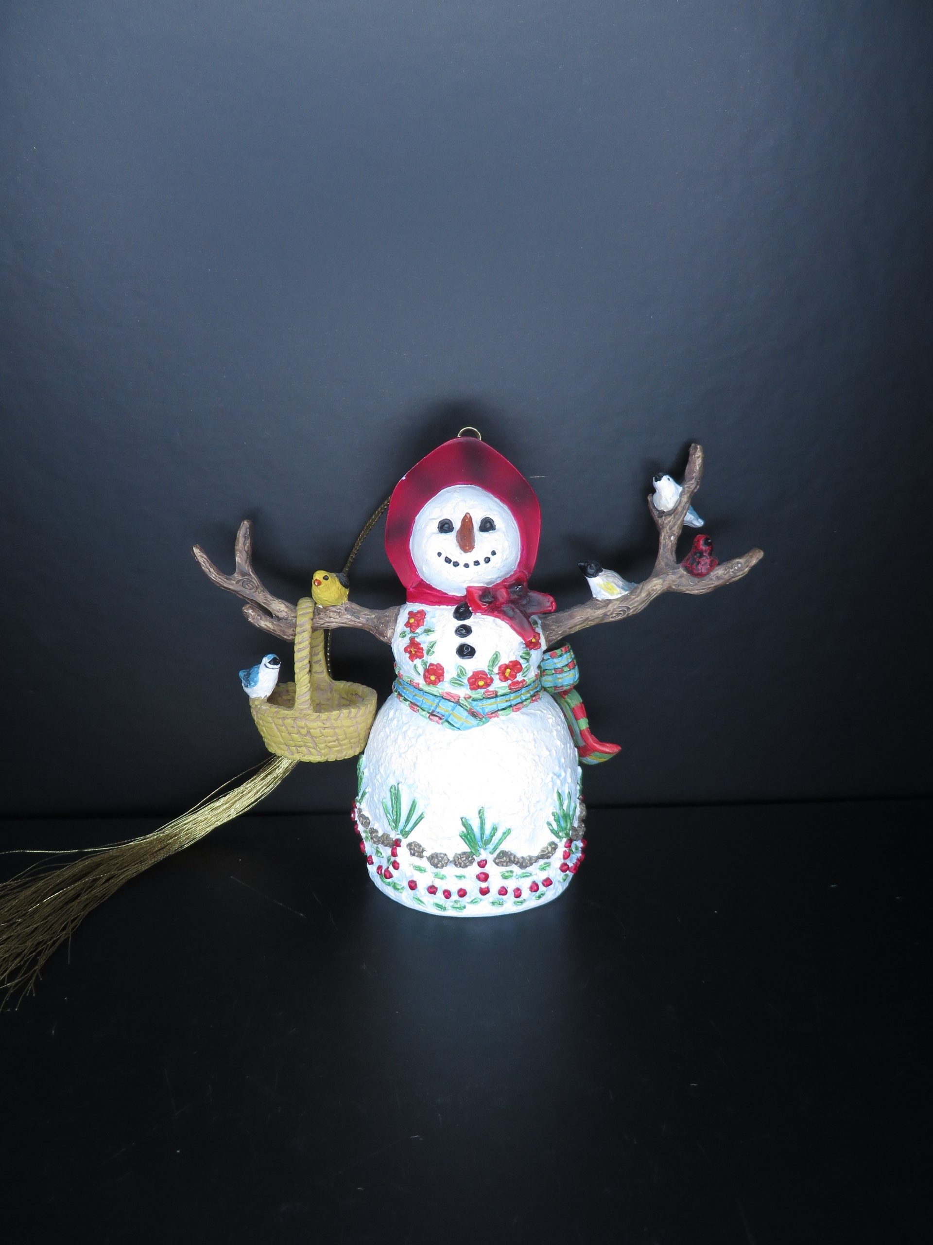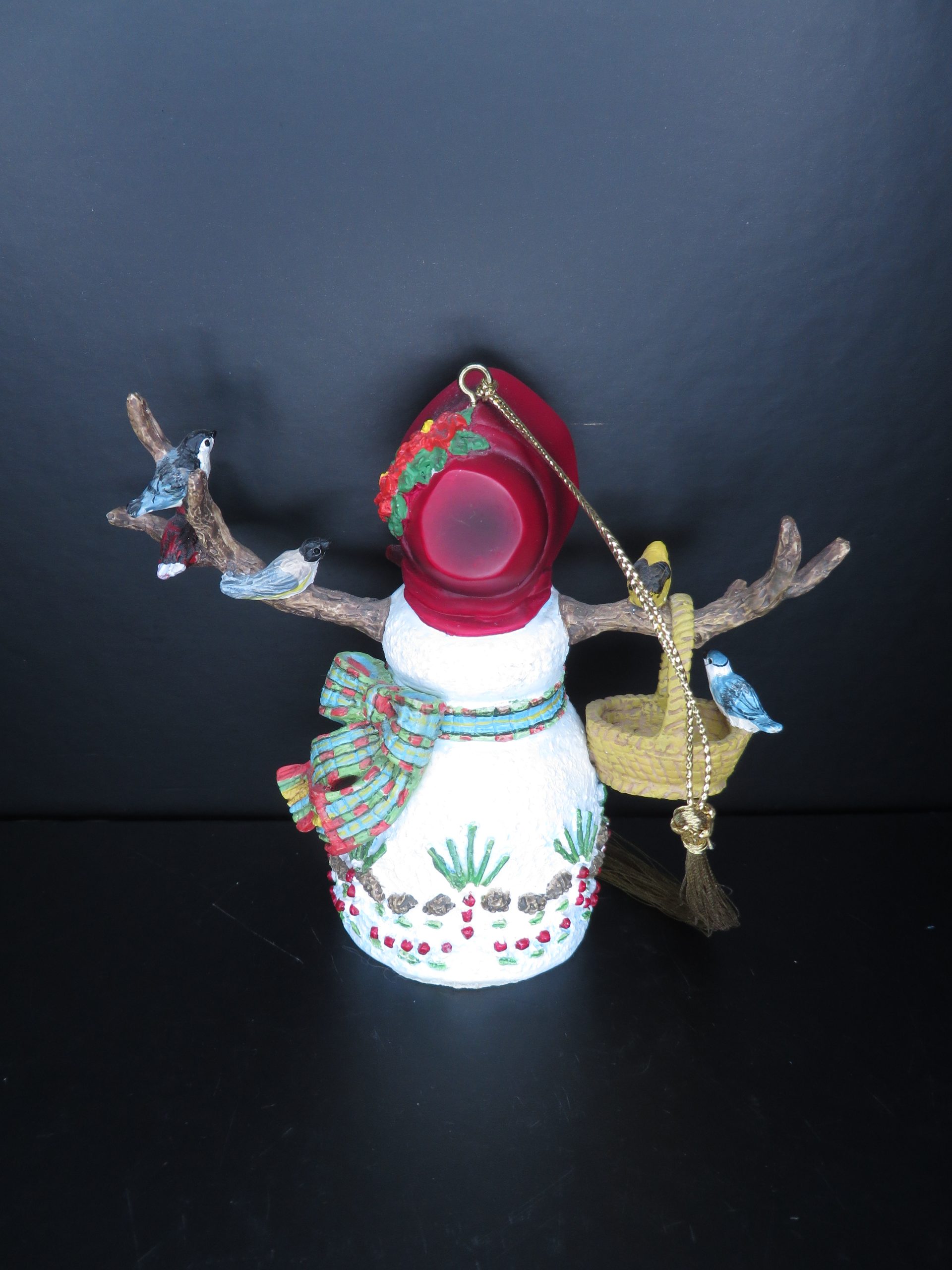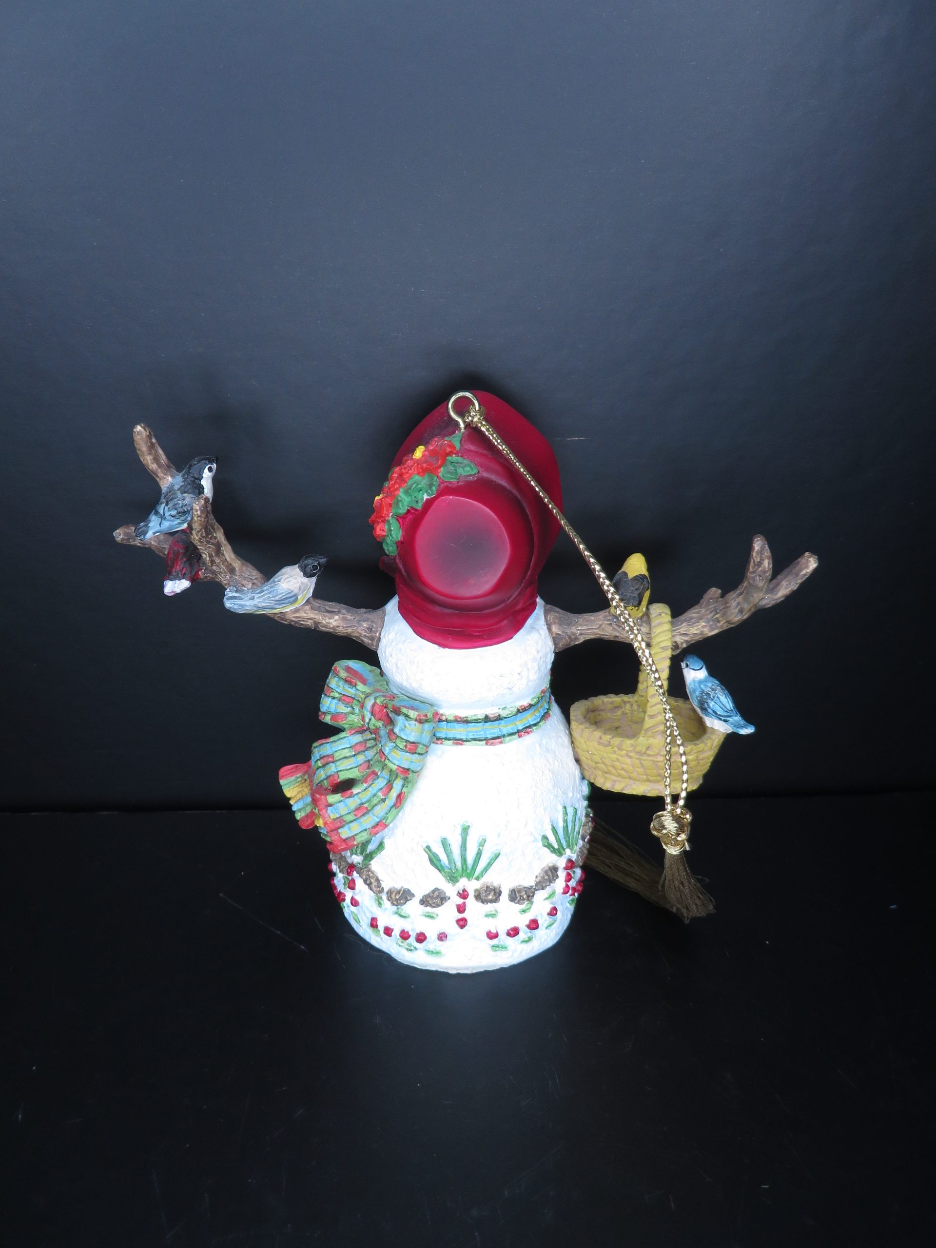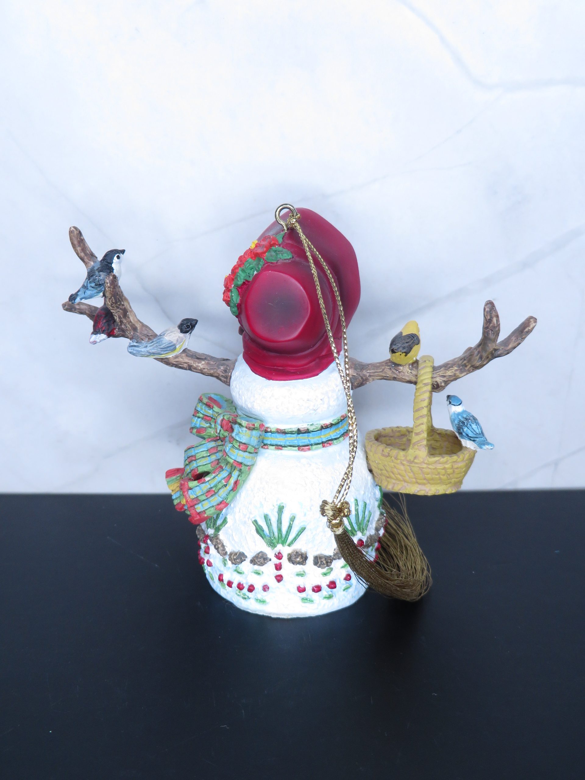 Beautiful snow-woman with intricate details as well as birds perched on her arms. 3½ inches tall.