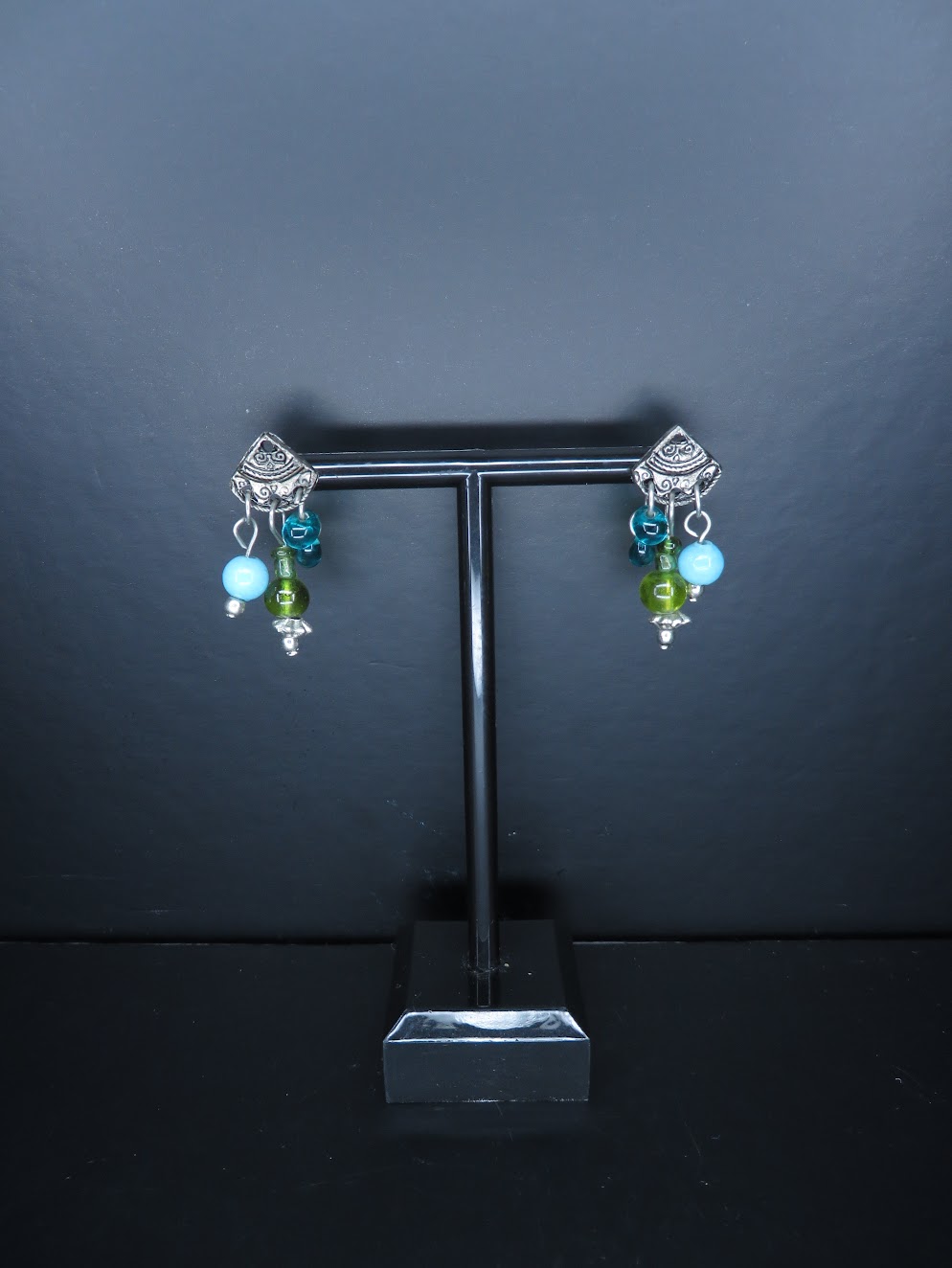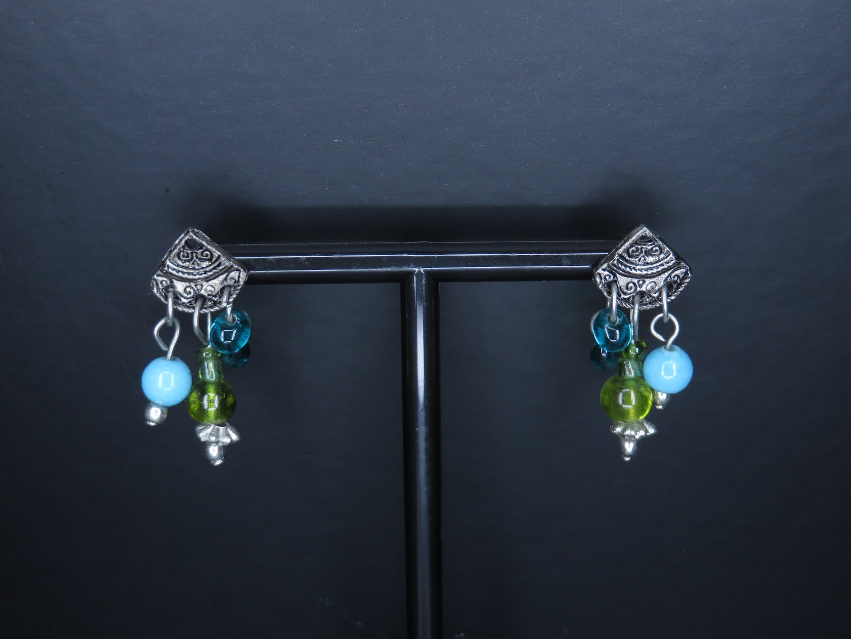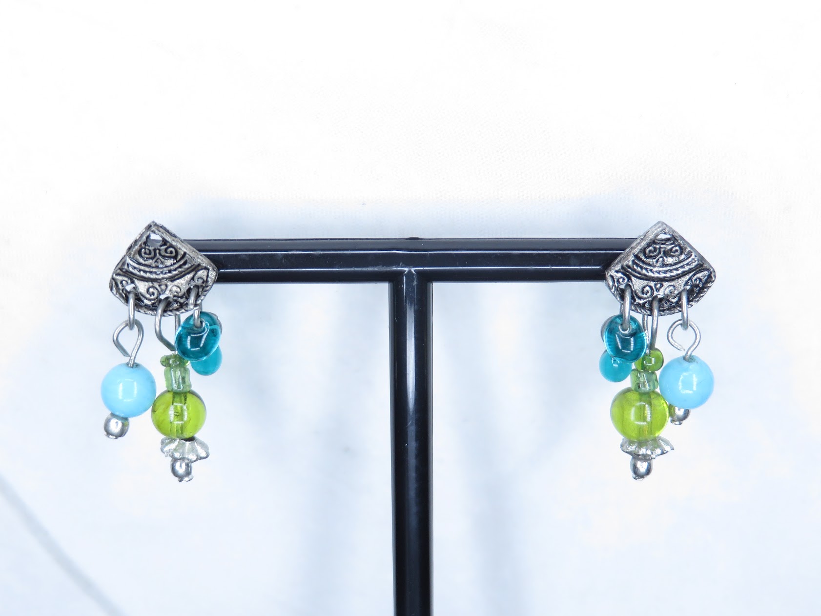 Be the first to review “Silver Tone Post Earrings with Blue and Green Beads” Cancel reply